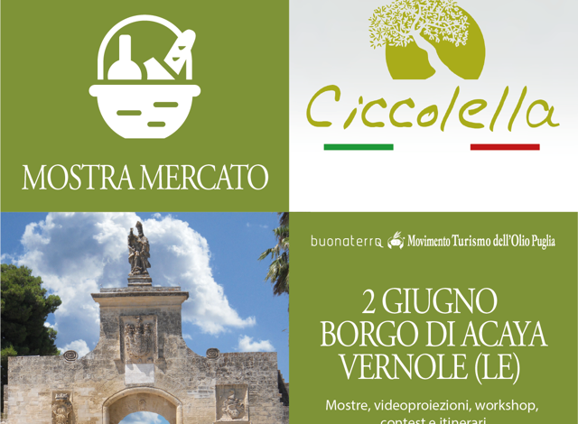 Olio Ciccolella vi aspetta sabato 2 giugno all’evento ABC OLIO nel suggestivo borgo di Acaya. La manifestazione organizzata da Buonaterra – Movimento Turismo dell’Olio Puglia, ha come scopo la riscoperta della cultura dell’extravergine e del turismo legato all’ulivo in Puglia.