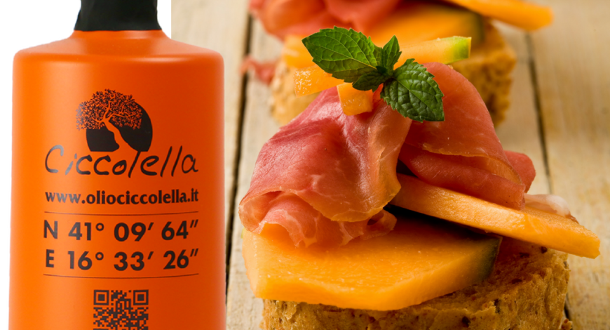 La nostra bruschetta è quasi pronta…non resta che aggiungerci il nostro blend delle varietà Coratina e Ogliarola Barese, perfettamente bilanciate nell’ ORANGE CRU , l’Evo che darà il tocco finale a questo piatto da aperitivo dove regnano sovrani colori vivaci e sapori diversi ma insieme gustosissimi!
